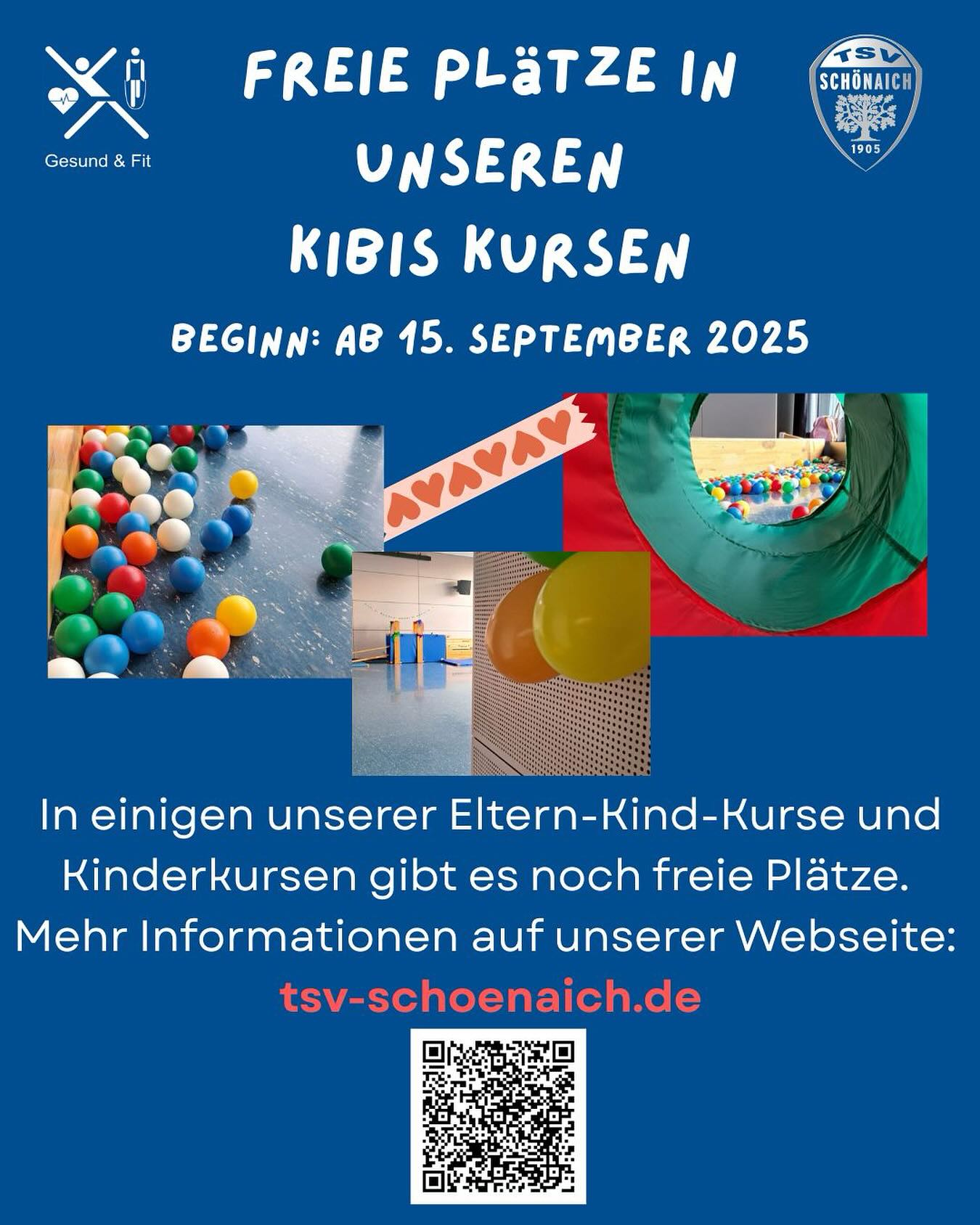 Jetzt schnell sein und Platz sichern! In unseren KiBiS (Kinder in Bewegung in Schönaich) Kursen gibt es gerade freie Plätze. Gleich auf unserer Webseite das Angebot prüfen und anmelden.