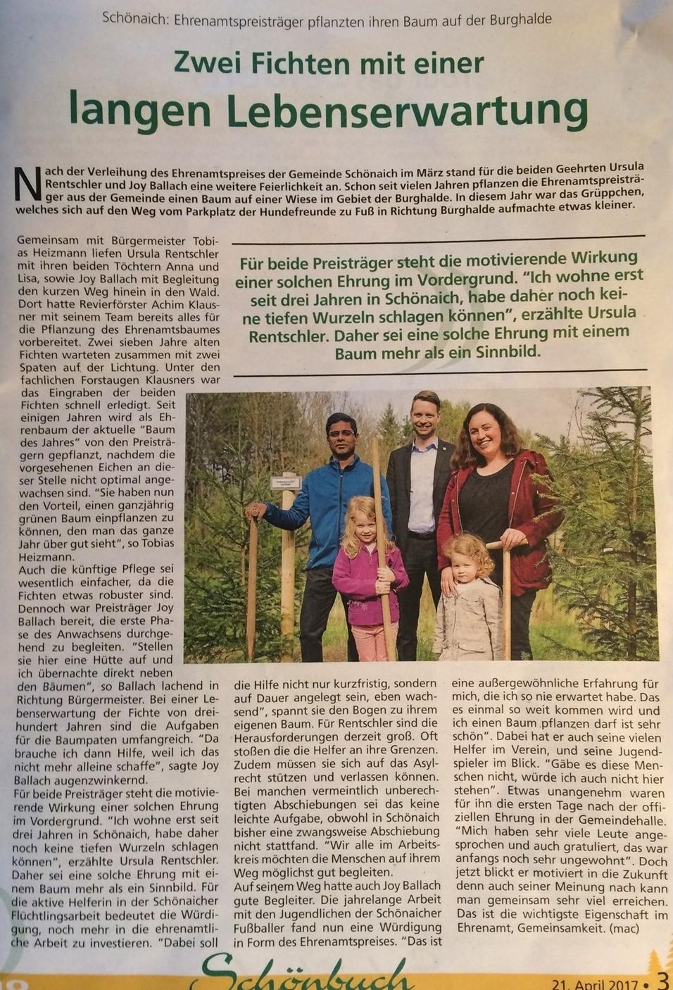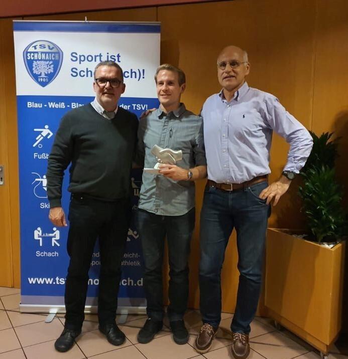 Für seine herausragenden Verdienste im Bereich unserer Nachwuchsarbeit wurde heute Joy Ballach von Bürgermeister Heizmann im Rahmen des Fühlingsempfangs vor ca. 200 Besuchern, inkl. unserer kompletten A-Jugend, der Schönaicher Ehrenamtspreis 2017 verliehen.