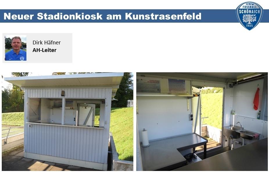 - Kiosk wurde und wird aktuell von Dirk Häfner auf Vordermann gebracht (Sicherheit, Hygiene, Ordnung….)