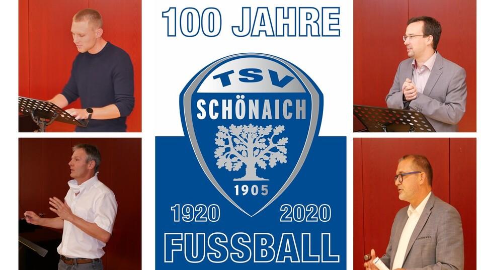Bürgermeister Daniel Schamburek stellte in seiner Ansprache deutlich heraus, dass es in einer Fußballabteilung nicht nur gute Fußballer braucht, sondern dass es um 100 Jahre alt zu werden sehr viel ehrenamtliches Engagement, Herzblut und Durchhaltevermögen abseits des Spielfelds bedarf. Auch stellte er den TSV Schönaich als wichtigen Bestandteil des Ortes dar.
