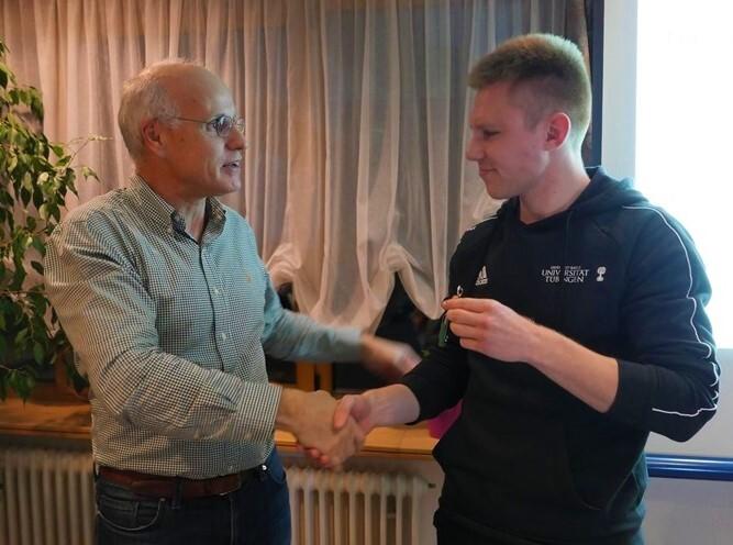 Beim Ehrungsabend am 15. Nov. 2019 überreichte Vereinsvorsitzender Norbert Lurz den Hubert-Bastian-Fairnesspreis an Jonas Sage.