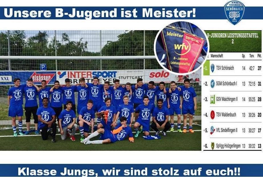 Große Freude beim TSV! Unsere B-Junioren haben sich heute nach einer überragend gespielten Saison den Meistertitel in der B-Junioren-Leistungsstaffel geholt und steigen in die Bezirksstaffel auf!