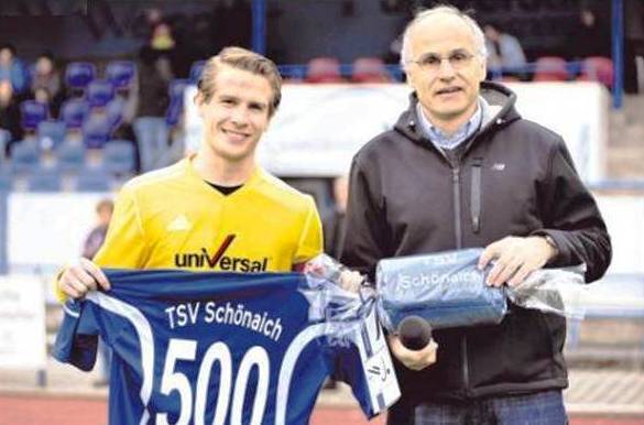 Vor dem heutigen Spiel wurde Jonas Sage für 500 Spiele im TSV-Trikot geehrt. Beginnend 1992 durchlief er sämtliche TSV-Jugendmannschaften und ist heute (seit 2008) Mannschaftskapitän unseres Bezirksligateams und ein herausragender Spieler im Kreis Böblingen und darüber hinaus. Der TSV Schönaich bedankt sich für die große Vereinstreue!