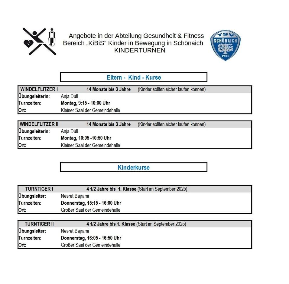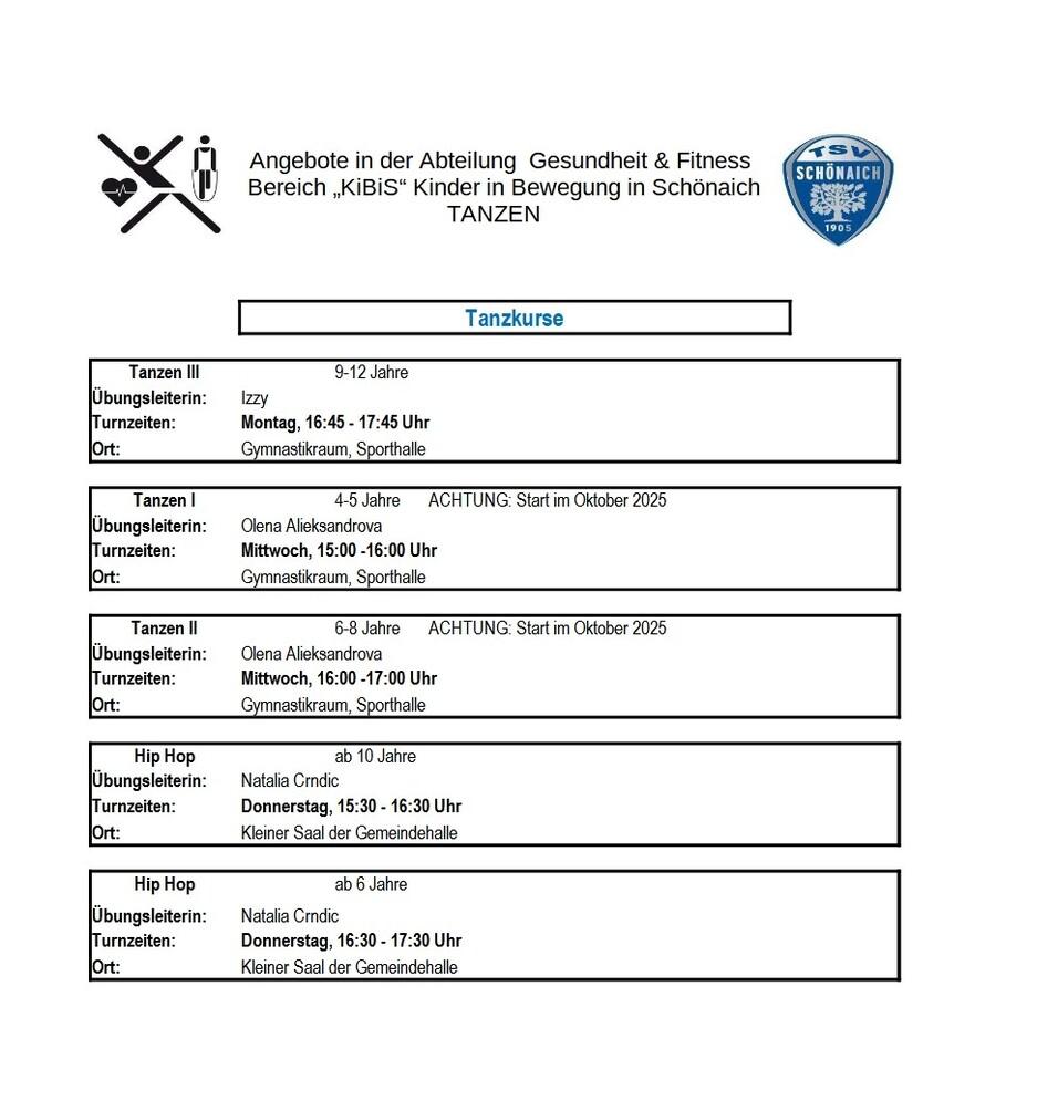 Freie Plätze in unseren Turn- und Tanz-Kursen
